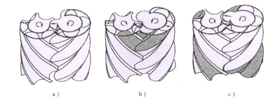 气体经吸气口进入转子齿间容积,随着转子的转动,齿间容积不断扩大,当齿间容积达到最大时,齿间容积与吸气口断开,吸气过程结束。