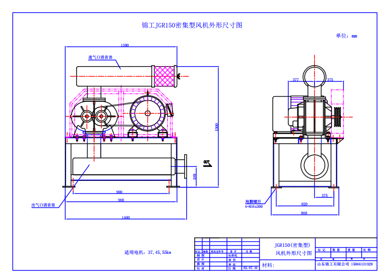 以上为罗茨风机外形尺寸图,与国内各大品牌通用,CAD文件如有需要,可致电山东广东会有限公司索取。
