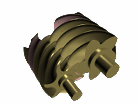螺杆压缩机的基本结构如下图所示。在压缩机的机体中,平行地配置着一对相互啮合的螺旋形转子。通常将齿形厚者称为阳转子或阳螺杆;将齿形薄者称为阴转子或阴螺杆。一般阳转子与原动机连接,由阳转子带动阴转子转动。转子排气端上的球轴承使转子实现轴向定位,并承受压缩机中的轴向力。在压缩机机体的两端,分别开设一定形状和大小的孔口。一个供吸气用,称为吸气孔口;另一个供排气用,称为排气孔口。(一般从上进气,从下排气) 。
